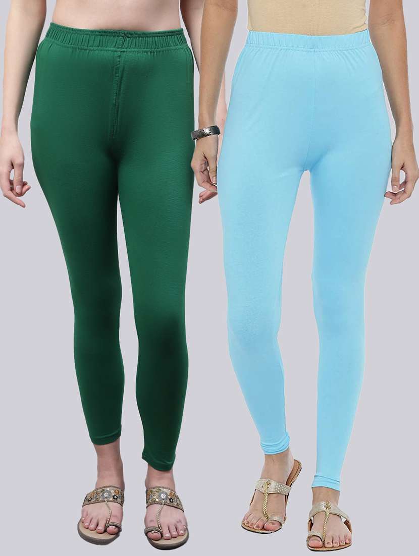 Upgrade your collection of warm-weather staples with these Solid Dark Green and Light Blue Leggings combo by Valles365. Pair them with a flowy tee and lace-up sandals for a super chic look.