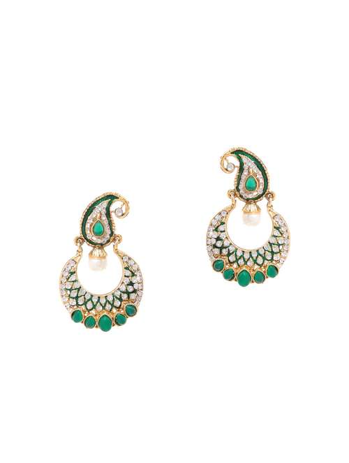 green embellished chand bali earrings - 9649052 - Very Small Image - 1