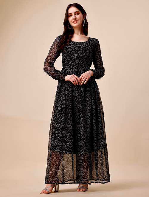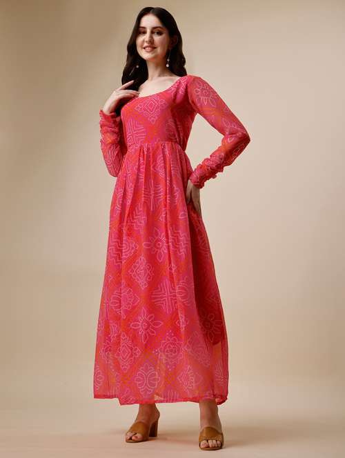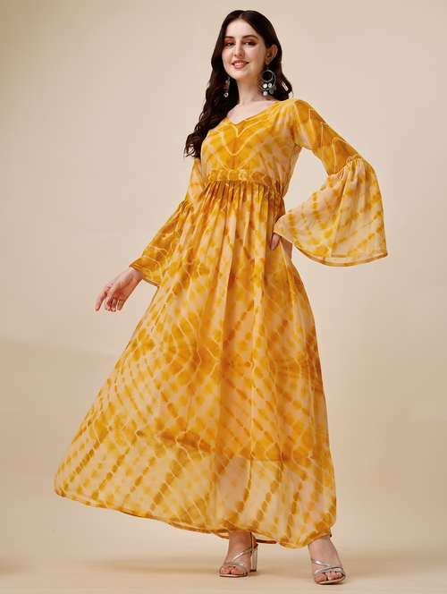 - Dress up in a soothing pattern and don this dress made of georgette material.