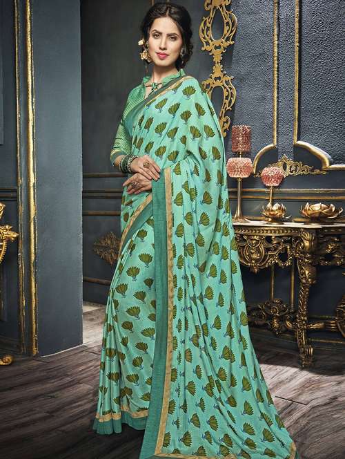 - » green printed saree