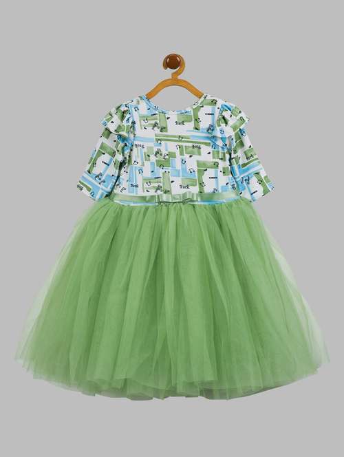 Toy Balloon Kids Military Green Knee Length Girls Party Wear Dress