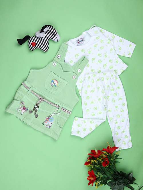 - Browse through the huge collection of casual wear twin sets and jump suits for girls in green colors and designs to make your young lady look the fashionista that she is.