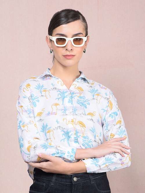 - » women printed long sleeves crop shirt