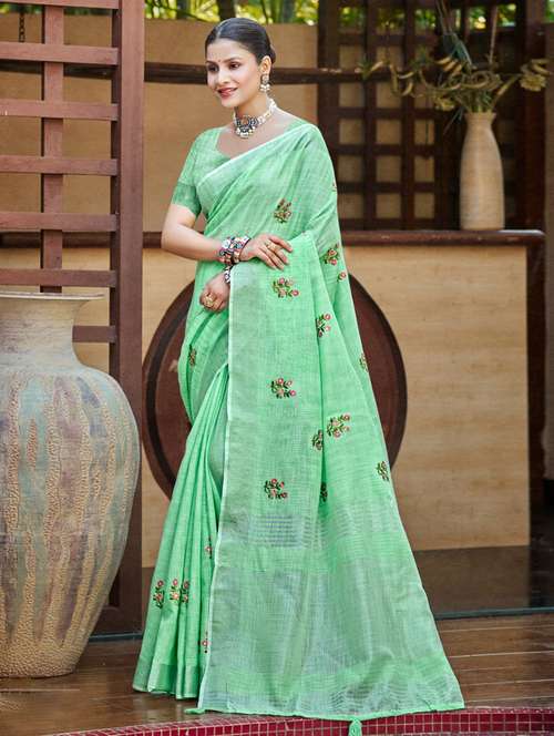 SANGAM PRINTS brings to you this saree which is made from Linen fabric and is available in attractive colours. The saree is a suitable amalgamation of style with the grace that is required from an ethnic wear. You can wear it to casual occasions as well as make it a part of your festive wear.The saree comes with a 80 cm separate blouse piece which is of the same shade as that of saree. It is unstitched and can be altered according to your desired style and fit.Pair this saree with a clutch and a pair of fashion sandals or any casual footwear of your choice for a casual look when dressing up for a party. You can also pair it with a pair of earrings and bangles when adorning this outfit for a festive occasion. SANGAM PRINTS Sarees For Women With Blouse. This Is Saree For Women. Saree Length Is 6.30 Mtr Including Blouse Piece. Blouse Is Unstitched Fabric And 0.80 Meter. This Saree Looks Beautiful In Evening Parties.