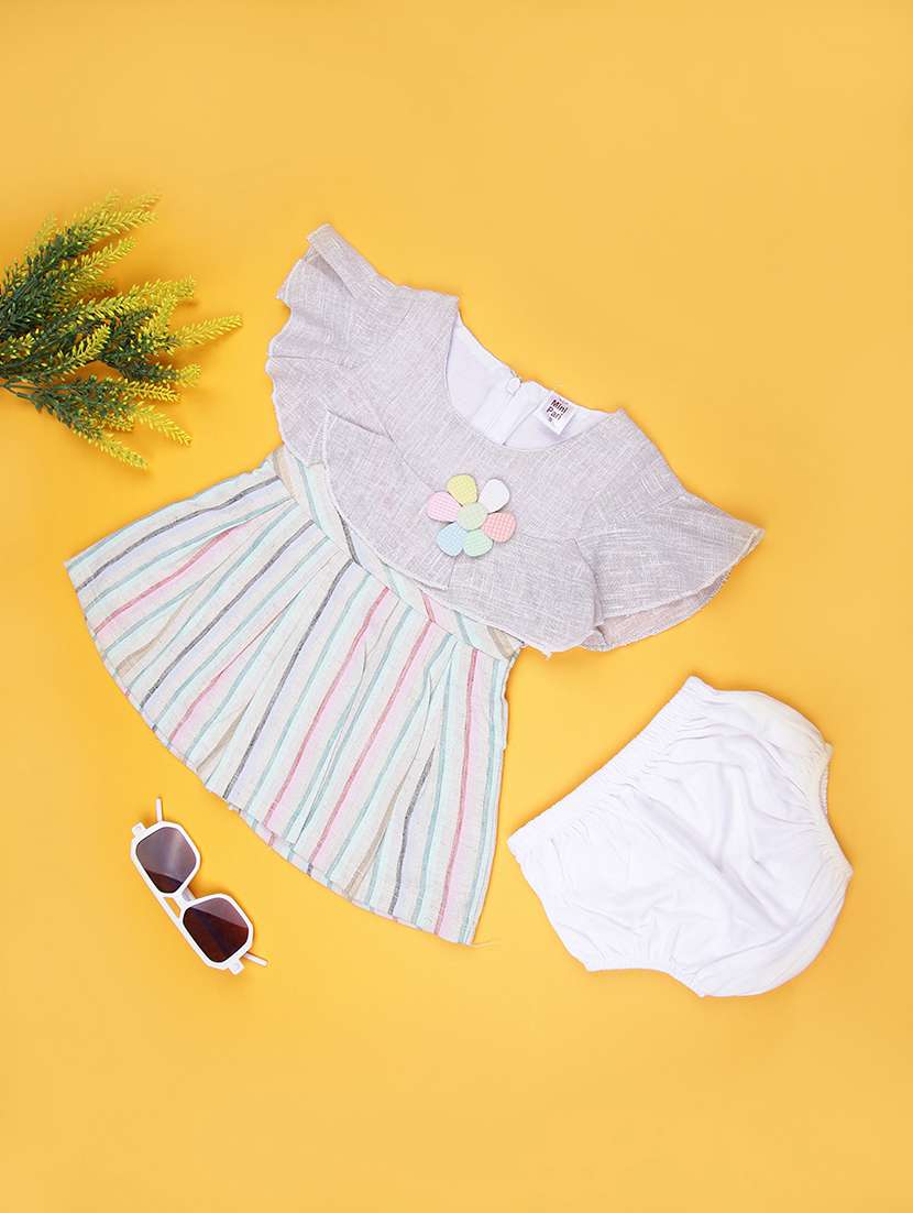 - Dress up your little ones in frocks featuring pretty patterns in cotton .