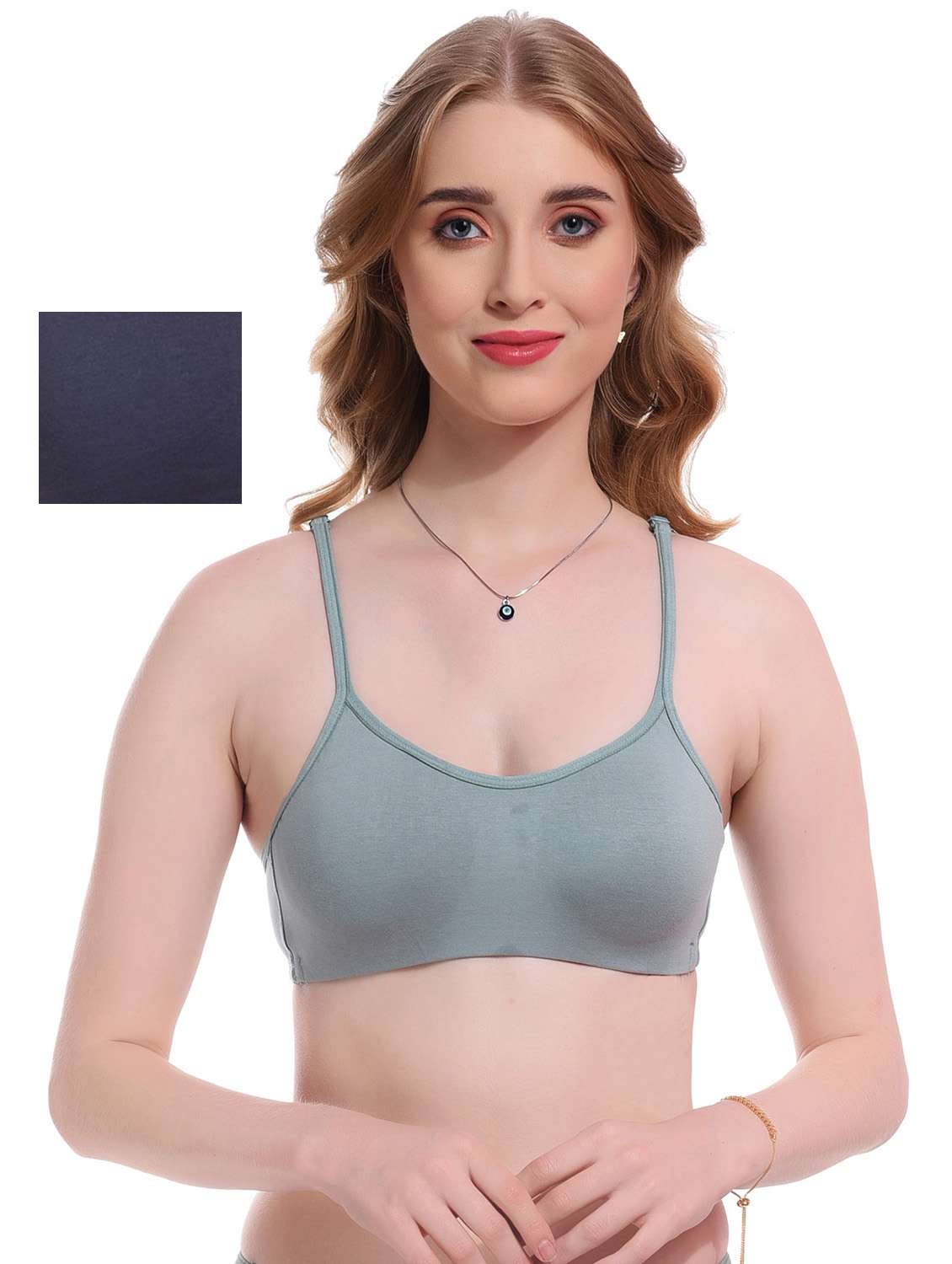 A women's lycra solid T-shirt bra is a type of undergarment designed to provide comfort and support while wearing T-shirts or other fitted tops.A bra is an undergarment worn by women to support and cover the breasts. Bras come in various styles and designs to cater to different needs and preferences. A T-shirt bra is specifically designed to be seamless and smooth, making it ideal for wearing under tight-fitting or lightweight T-shirts. The cups are usually molded and Non-padded to provide a natural shape while offering a bit of modesty by preventing nipple show-through.Bras made with lycra provide a comfortable fit that adapts to body movements and ensures a snug yet flexible feel.