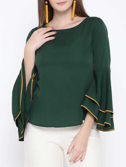 contrasting lace bell sleeved top - 15418746 - Very Small Image - 1