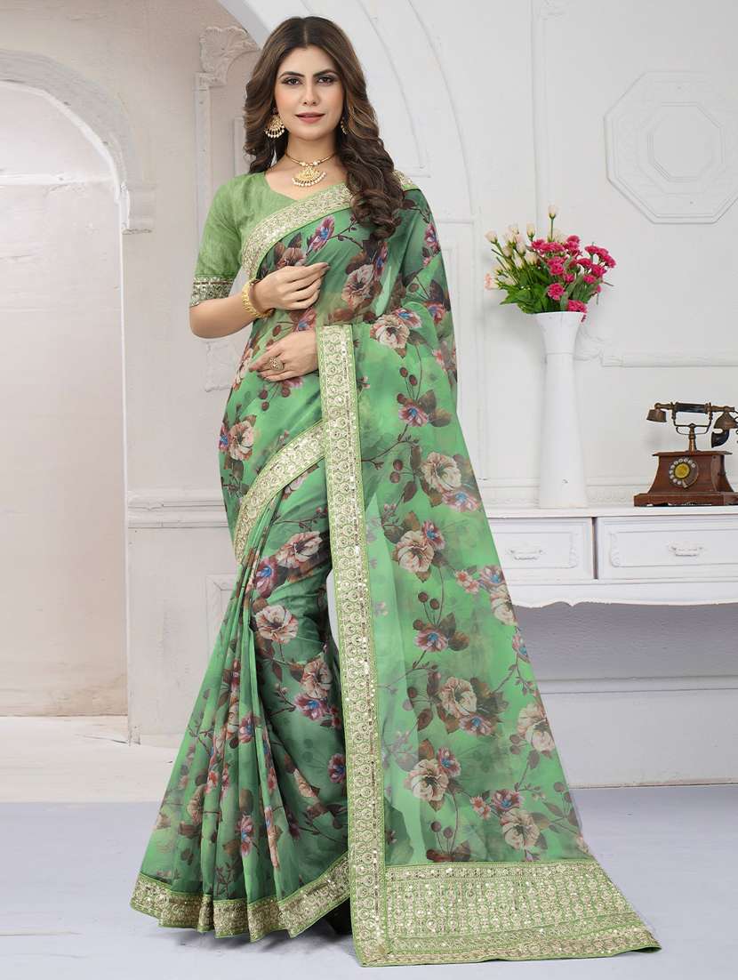 lace bordered printed saree with blouse - 19529593 - Very Small Image - 1