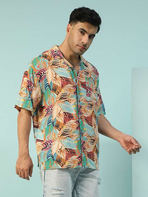 - » men tropical printed short sleeve loose fit casual shirt