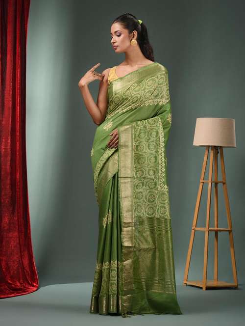 Look royal and loving in this green handwoven silk blend handloom saree. It has woven designs and patterns for a beautiful look.