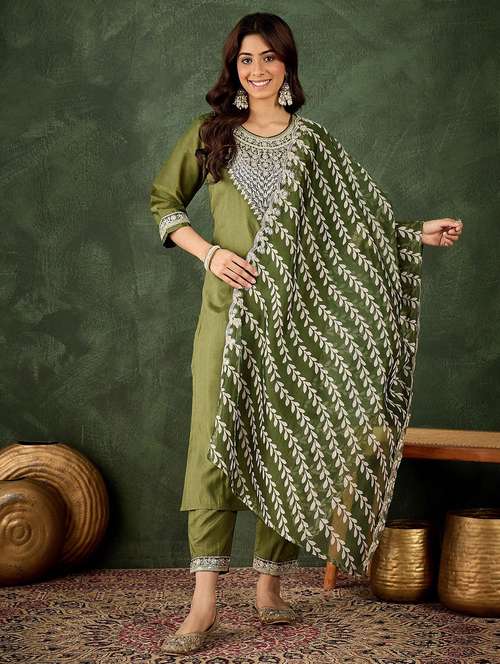 - Find gorgeous sets of ethnic wears in trending designs in green colors suitable for festive wear of occasions.