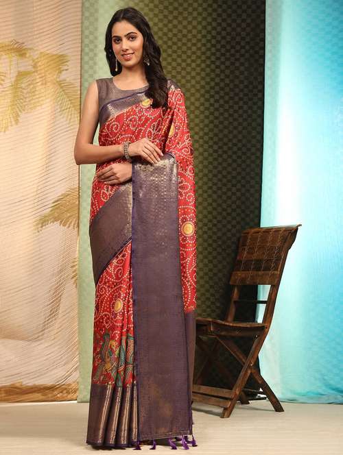 This Banarasi Pattu Soft Silk saree has Bandhani and Kalamakari Digital Print All over the body. Saree has gold zari broad border which gives it some heavy look. Saree has a rich pallu with beutiful tassels. The soft silk fabric drapes gracefully, creating a luxurious feel that complements any occasion.The highlight of this saree lies in the intricately designed Zalar on the pallu, enhancing its visual appeal. Also Saree avaliable in multicolor.