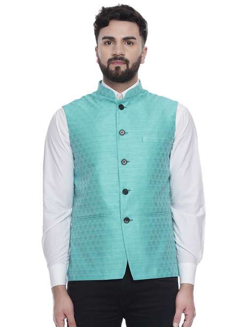 - » blue jacquard silk blend nehru jacket