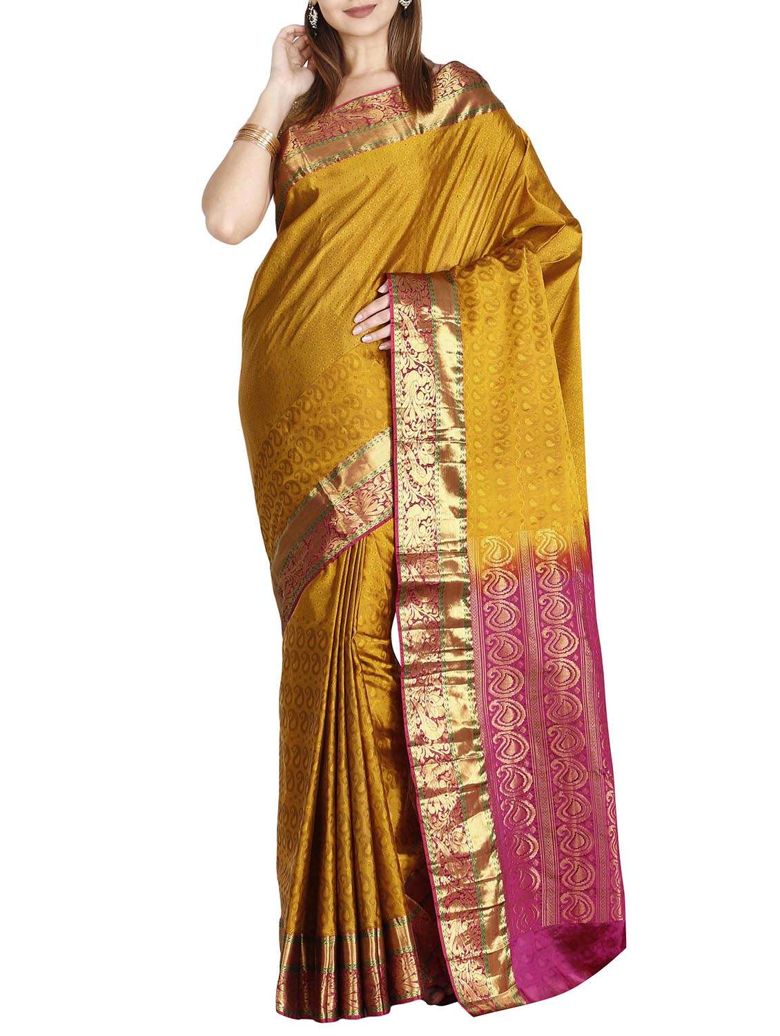 the chennai silks yellow kanjivaram saree with blouse