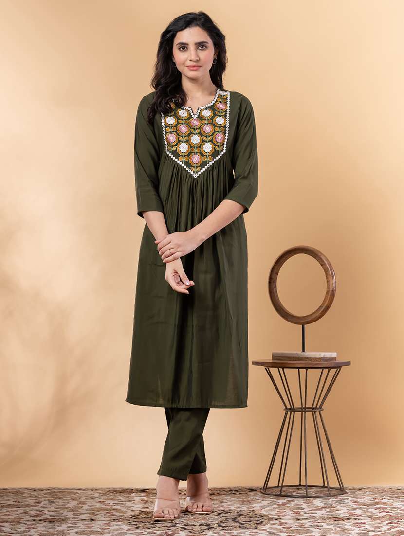 - Find gorgeous sets of ethnic wears in trending designs in green colors suitable for festive wear of occasions.
