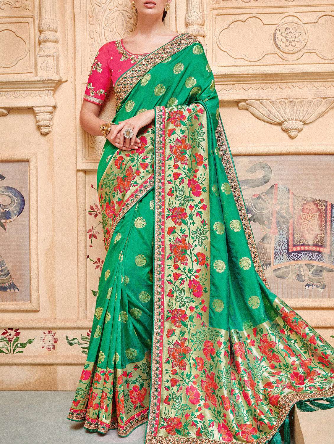 floral jacquard weave saree with blouse