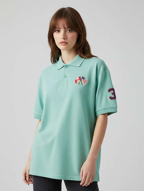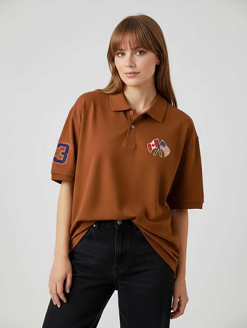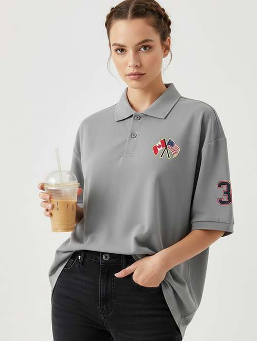 women printed short sleeve oversized polo t-shirt - 22264808 -  Standard Image - 0 women printed short sleeve oversized polo t-shirt - 22264808 -  Zoom Image - 0