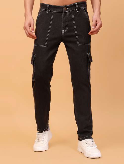 - » men solid black cargo jeans
