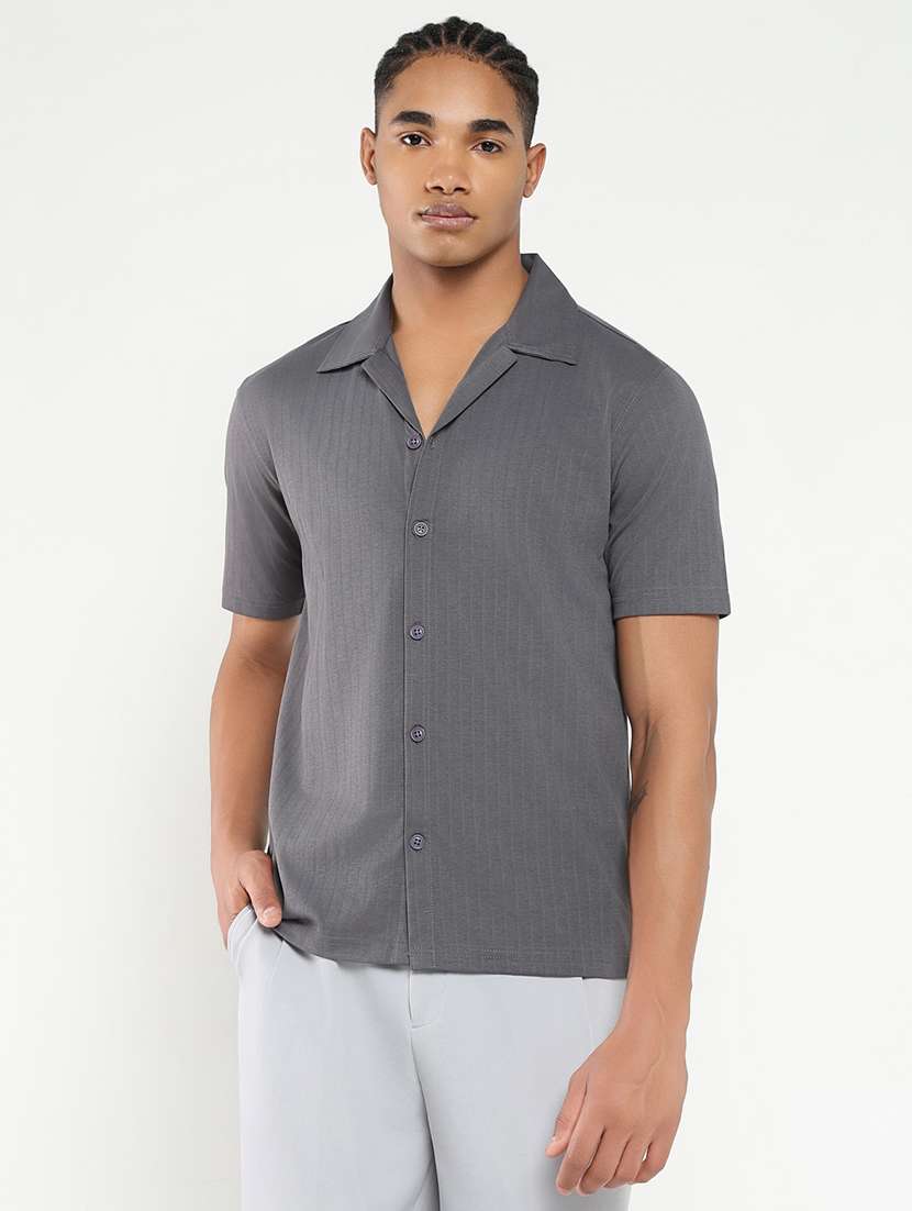 men solid short sleeve casual shirt - 21550049 - Very Small Image - 1