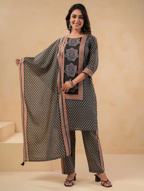 - Find gorgeous sets of ethnic wears in trending designs in grey colors suitable for casual wear of occasions.