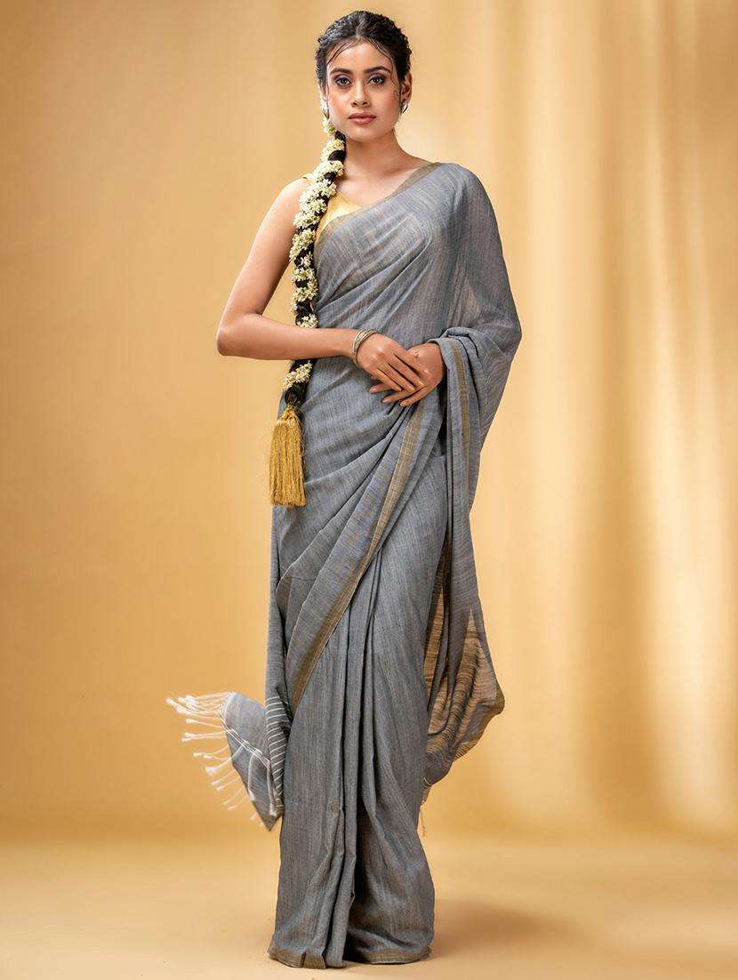 - » women solid handloom saree with blouse
