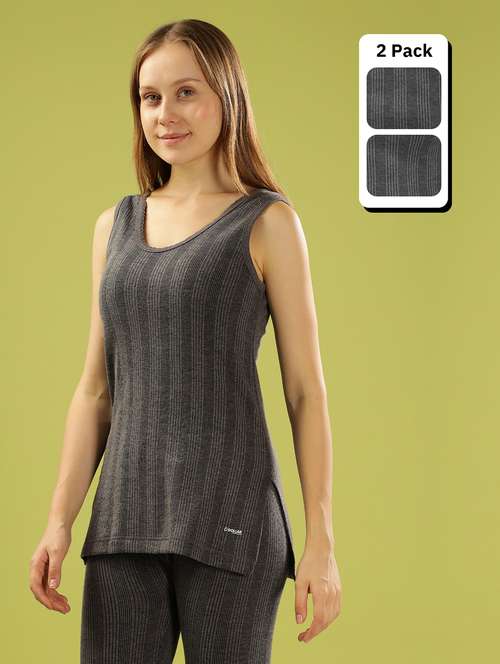 - Choose among the grey color range of comfortable style of sleeveless thermals and inner wear which can be worn under any kind of outfit.