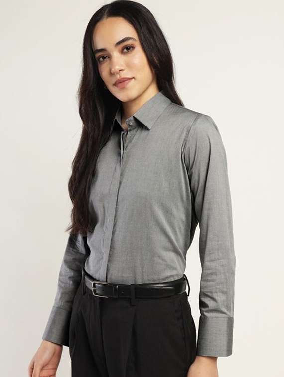 - » women solid collared long sleeve shirt