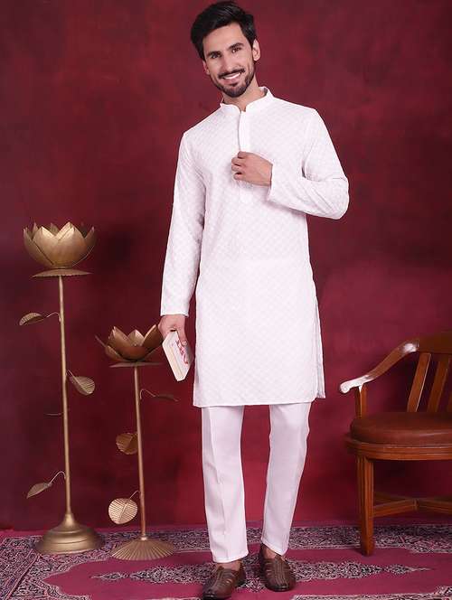 Embroidered and Sequence Rayon Kurtas for men. The beautifully designed pattern is sure to impress and the Rayon fabric is comfortable and easy to wear.