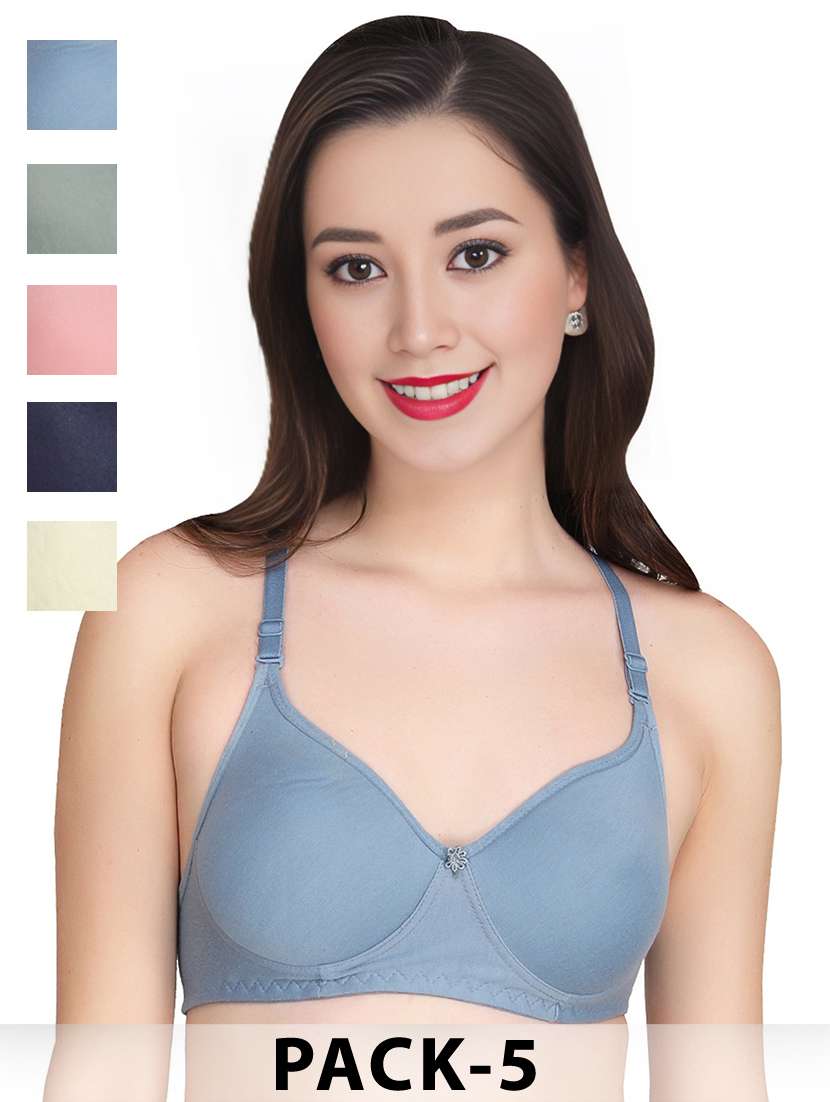 women pack of 5 solid non wired bra