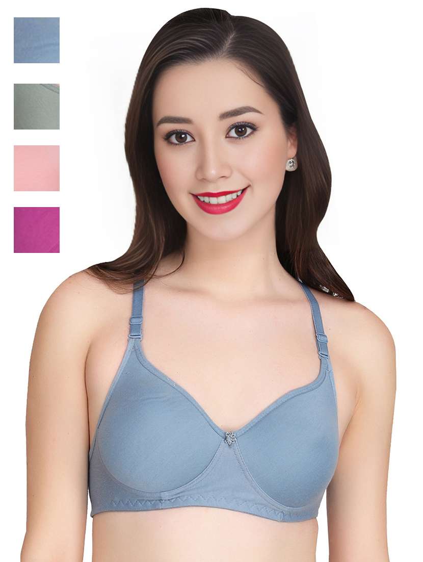women pack of 4 solid non wired bra