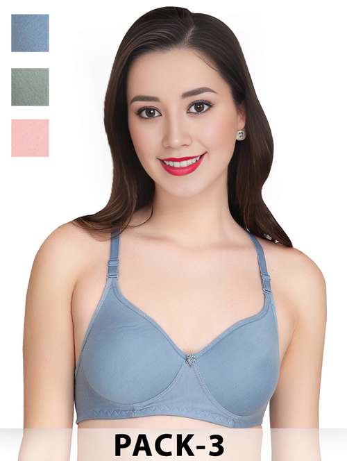 Liigne Women Everyday Padded Bra (Pack Of 3) - Made of Pure Cotton Full Coverage Non Wired Pushup Soft Cup for T-Shirt Saree Dress Sports Garment for Daily Use Everyday