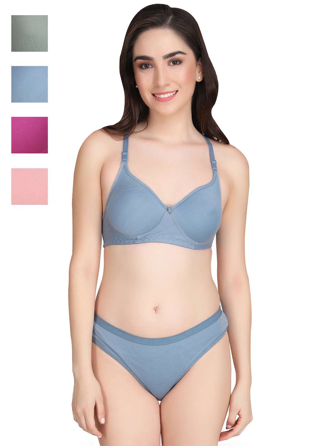 Liigne Women Everyday Padded Bra Panty Set (Pack Of 4) - This Lingerie Set Made of Pure Cotton