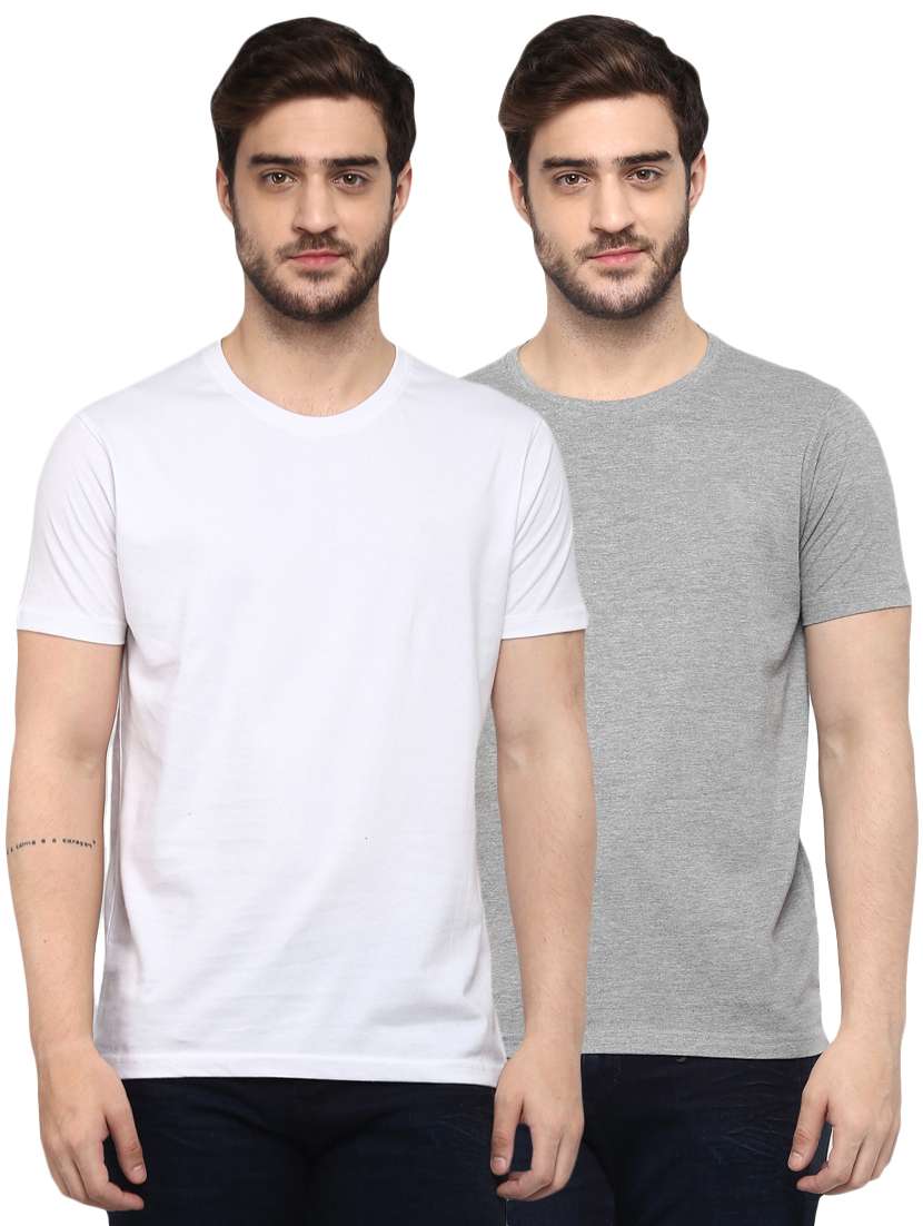 white and grey solid combo t-shirts