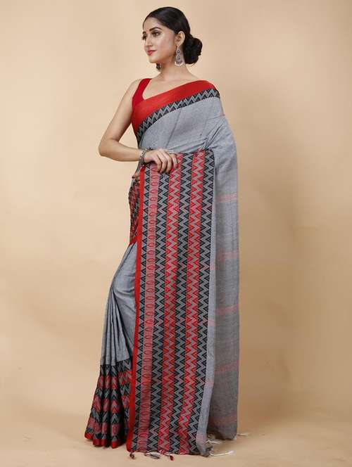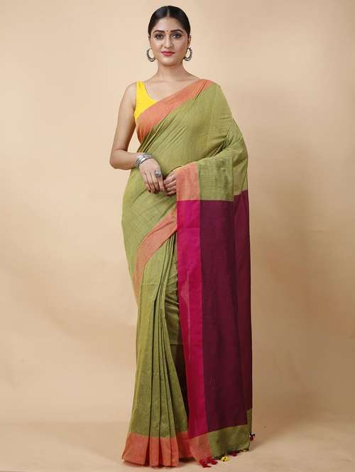 - » women solid with bordered handloom saree