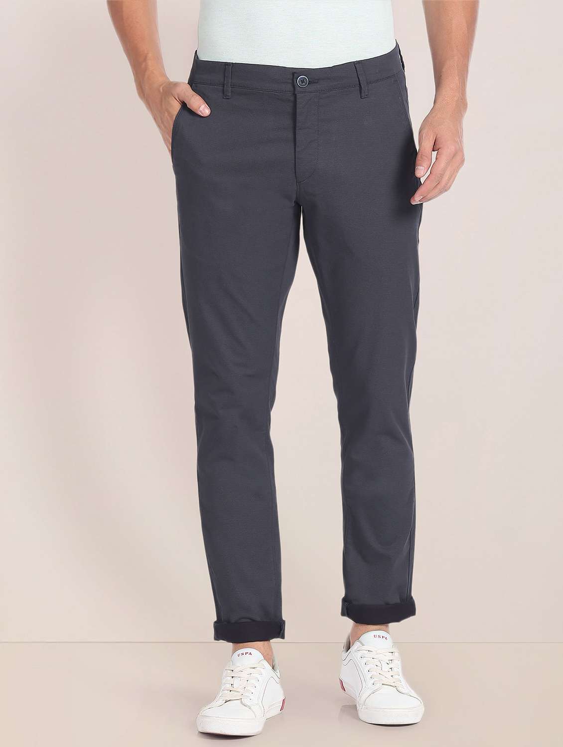 - » men mid rise solid chinos casual trouser