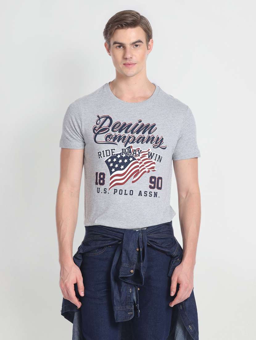 - » men round neck front print t-shirt