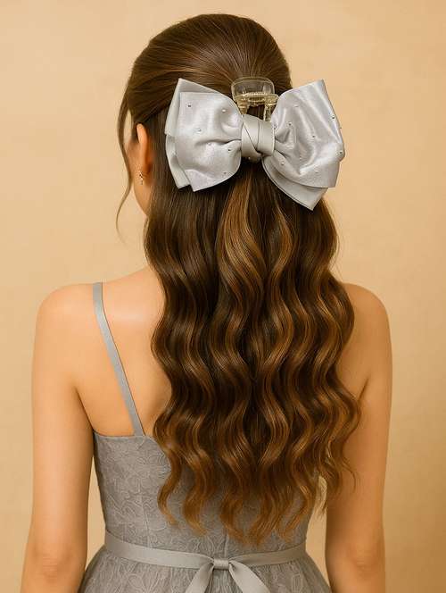 Add a touch of elegance to your everyday and party hairstyles with this premium satin bow hair claw. Crafted with a smooth, rich satin fabric in a deep wine red shade, it is delicately embellished with subtle rhinestones that add a graceful sparkle. The sturdy transparent claw base ensures a strong grip, making it suitable for both casual and festive looks. Designed in a chic Korean-inspired style, this hair claw combines functionality with fashion, making it the perfect accessory to elevate any outfit. Ideal for half-up hairstyles, parties, dinners, weddings, or even daily wear, it keeps your hair neat while adding a stylish charm.