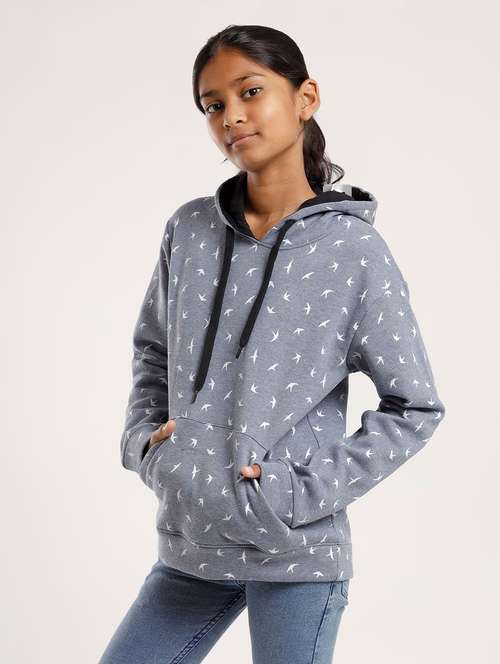 - » girls printed long sleeve hooded sweatshirt