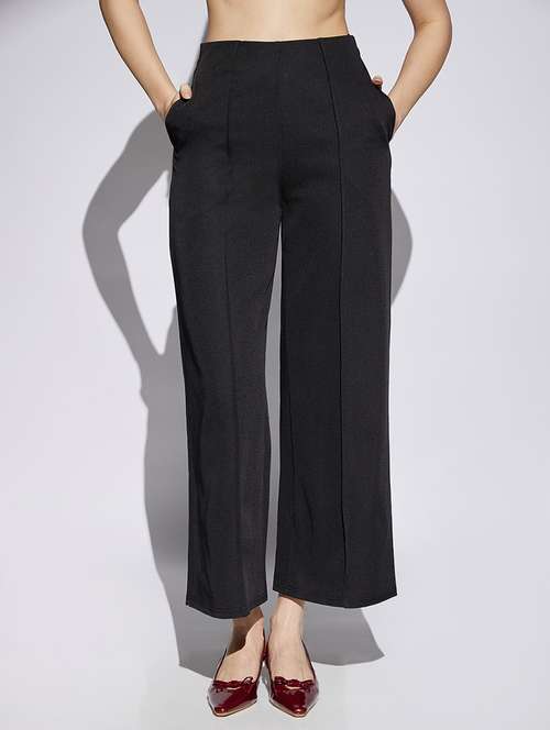 - » women solid high rise wide leg trouser