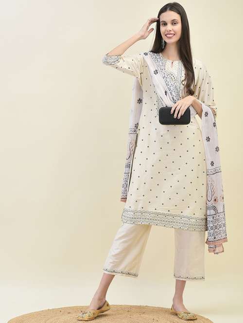 - Save your time mixing and matching various ethnic pieces and invest in beautiful suit set ethnic sets from SHREE brands that give a well-fitted look in all styles.