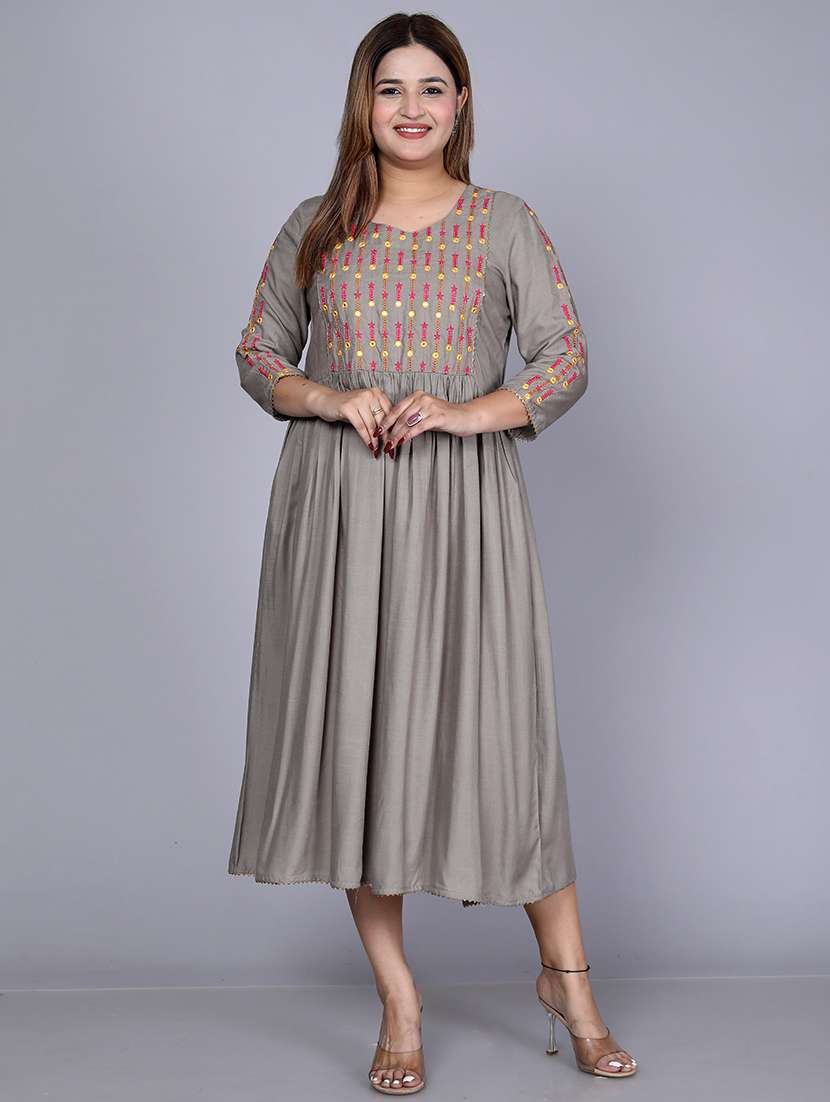women grey embroidered detailed ethnic dress