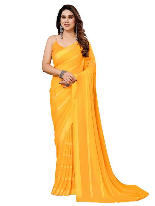 Elevate your ethnic charm with this stunning Bollywood Satin Striped Saree. Crafted from soft and lustrous satin fabric, this saree features elegant striped patterns that add a modern touch to its traditional appeal. Inspired by glamorous Bollywood fashion, it's perfect for festive occasions, parties, weddings, and special events.This saree comes with a matching unstitched blouse piece, allowing you to customize it to your style. The smooth satin drape ensures a graceful fall and all-day comfort, making you the center of attention wherever you go.