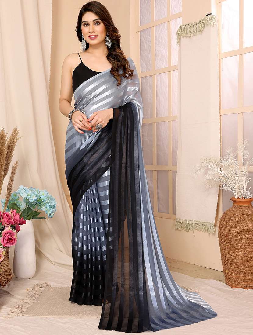 Elevate your ethnic charm with this stunning Bollywood Satin Striped Saree. Crafted from soft and lustrous satin fabric, this saree features elegant striped patterns that add a modern touch to its traditional appeal. Inspired by glamorous Bollywood fashion, it's perfect for festive occasions, parties, weddings, and special events.This saree comes with a matching unstitched blouse piece, allowing you to customize it to your style. The smooth satin drape ensures a graceful fall and all-day comfort, making you the center of attention wherever you go.