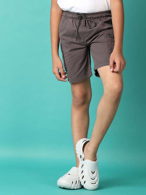 boys solid mid rise shorts with drawstring
