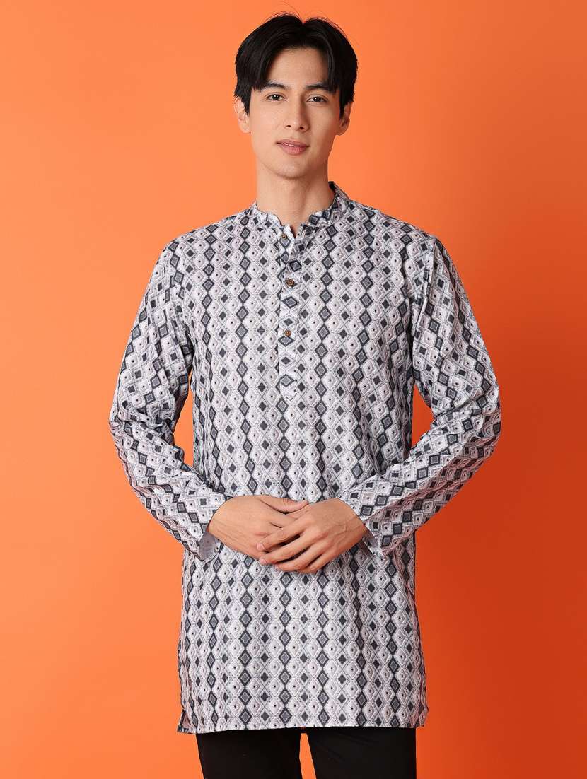 - » men printed mandarin neck short kurta