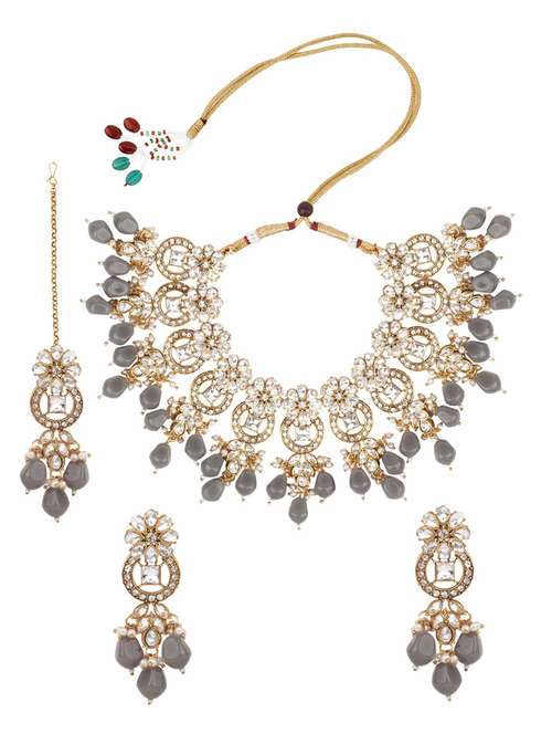 - Lay your hands on this exquisite jewellery set from MATUSHRI ART in grey colours.