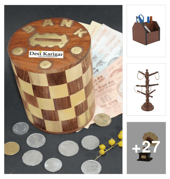 desi karigar antique sheesham brass inlay gramophone showpiece
