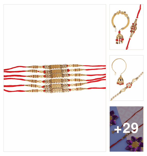ad embellished golden beads rakhi (set of 5)