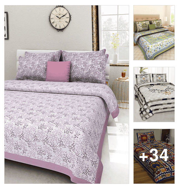 uniqchoice pink color 100% cotton jaipuri traditonal double bedsheet with 2 pillow cover