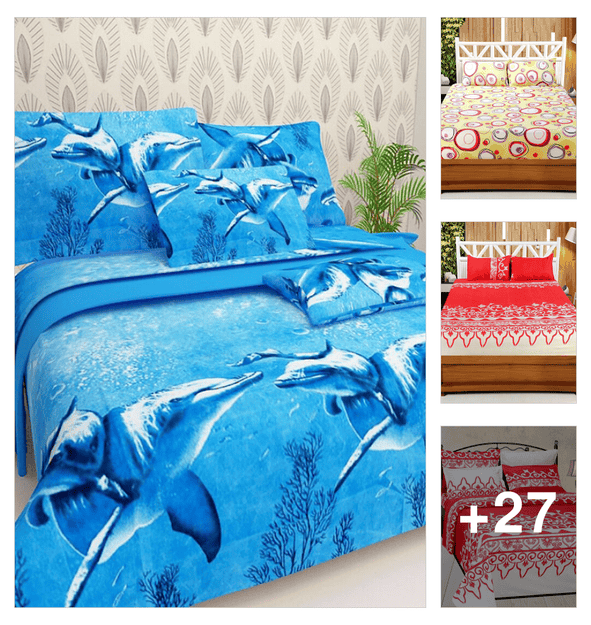 uniqchoice blue color 100% cotton jaipuri traditonal double bedsheet with 2 pillow cover